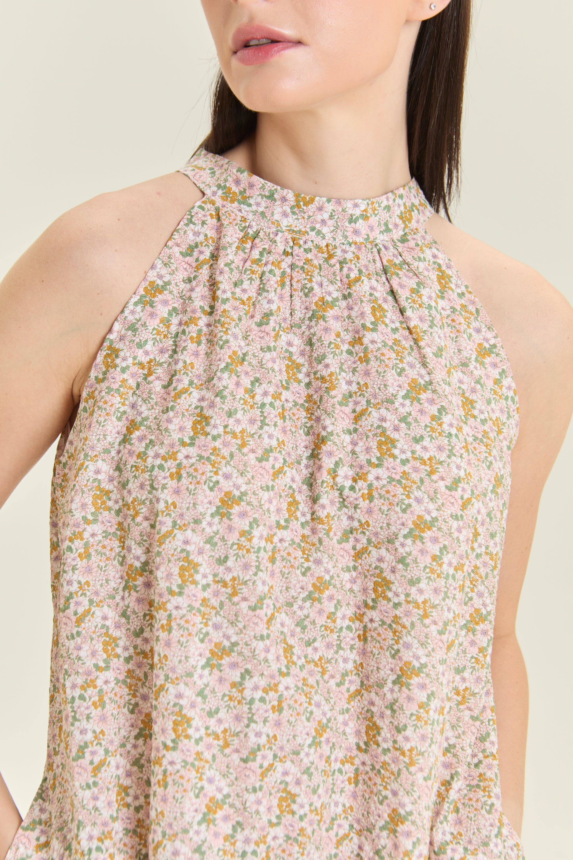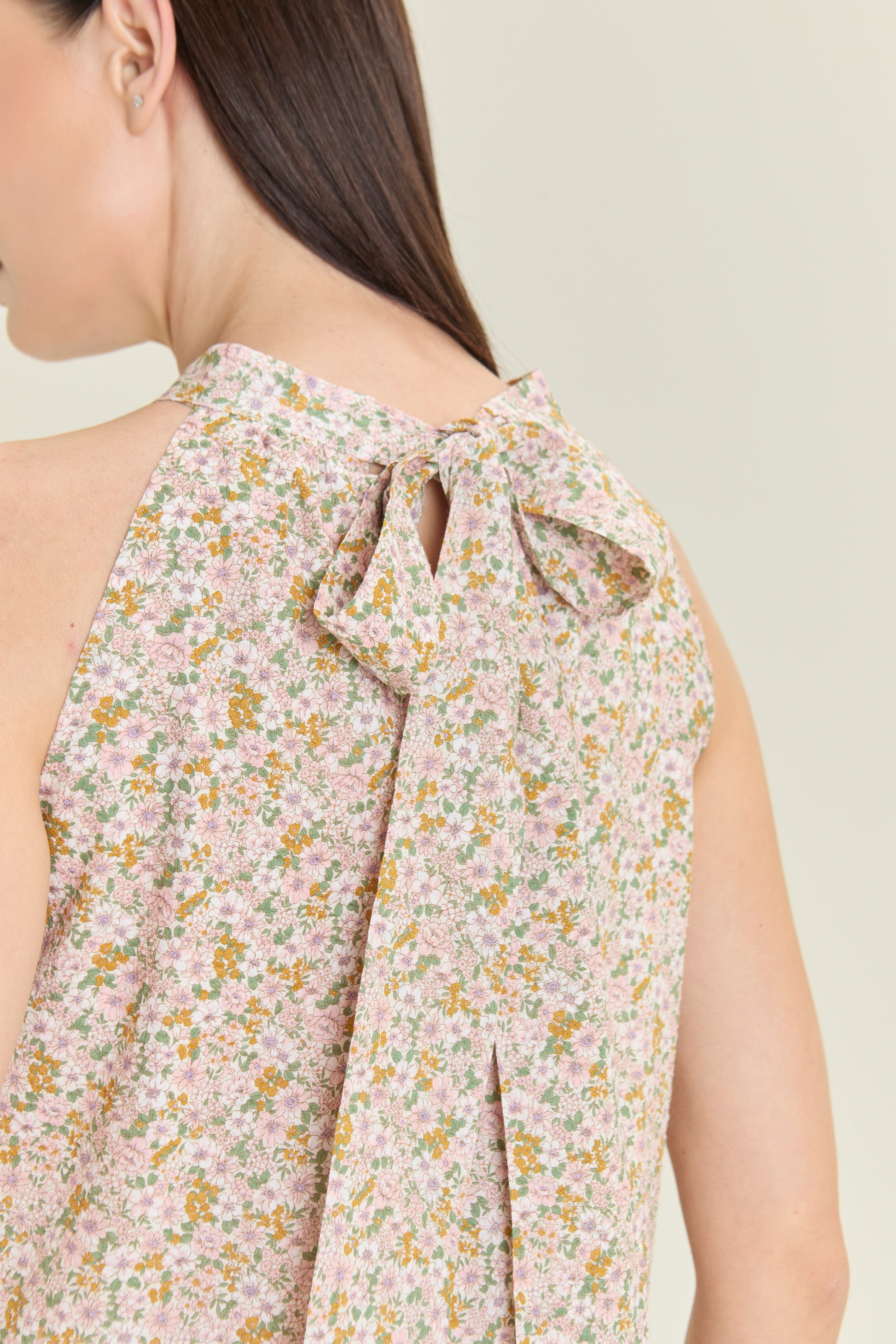 Tie-ribbon Halter Maxi Dress - Blush Garden